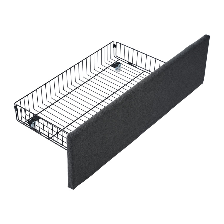 • Außergewöhnlich langlebig Dieses aus hochwertigen Materialien gefertigte Stauraumbett verspricht, Ihnen jahrelang gute Dienste zu leisten. Der Bezug aus grauem Leinenstoff ist über einen langen Zeitraum hinweg haltbar, und die Metallfüße bieten zusätzlichen Halt für ein außergewöhnliches Maß an Unterstützung, das mit dem beispielhaften Komfort einhergeht.