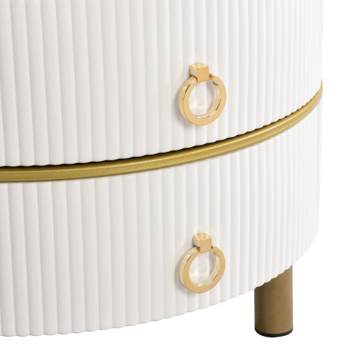 Product Name:2-in-1 runder Couchtisch aus MDF, Beistelltisch mit 1 weißen Platte und 1 braunen Platte aus gehärtetem Glas, Couchtischkombination mit 2 Schubladen für das Wohnzimmer, 70*70*45 + 50*50*40 cm
