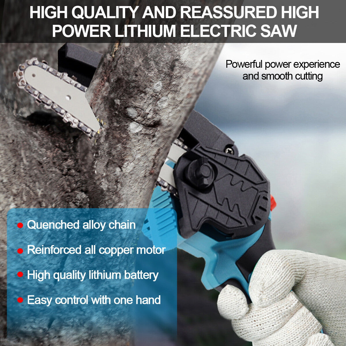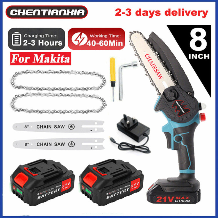 2 Batteries 8-4000W Mini Cordless Chainsaw Electric One-Hand Saw Wood Cutter
