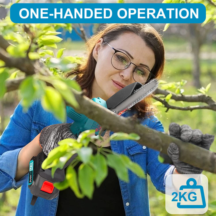 【One Hand Operated】This handheld chainsaw only weighs 2KG(Approx), compact and comfortable design makes it easy for you to control with one hand, and even women and the elderly will not feel tired after using it for a long time. Comes with a portable tool case for easy storage and portability.