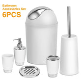 Bathroom Accessories Set 6 Pcs Bathroom Set Ensemble Complete Soap Dispenser Toothbrush Holder Tumbler Soap Dish Toilet Cleaning Brush Trash Can