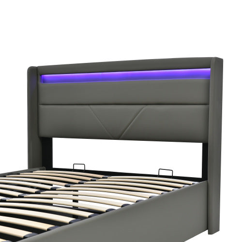 Product Name:Hydraulisch Stauraumbett mit LED-Beleuchtungsleiste, Doppelbett Bettgestell Polsterbett 140x200cm, Funktionsbett, Grau (Mit Matratze)