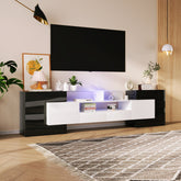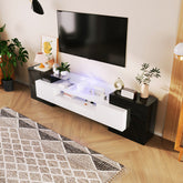 Product Name:Stilvoller TV-Schrank, niedriges Panel. Hochglanz-Weiß und Schwarz, 200 cm, LED-Beleuchtung Wohnzimmermöbel. Modernes Design. Elegante Glasoberfläche.